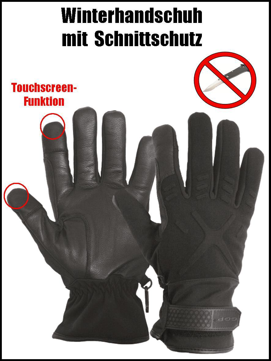 Gefütterte Ausführung des erfolgreichen Einsatzhandschuhs CR214 mit warmen Innenfutter. Die Handinnenseite besteht aus weichem, strapazierfähigem Leder. Schnittschutzfutter aus 100% Para-Aramid im Bereich der Hand- und Fingerinnenseiten. Der Bereich des Hand- und Daumenrückens besteht aus einem elastischen, atmungsaktiven Polyester-Gewebe, das gewährt eine optimale Passform und reguliert das Klima innerhalb des Handschuhs. Touchscreen-Funktion in der Spitze des Daumens und Zeigefinger.