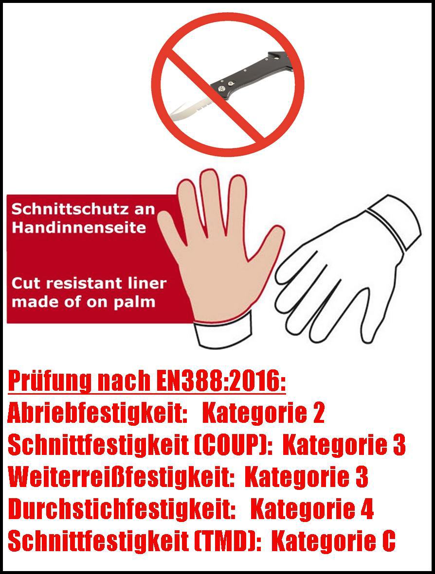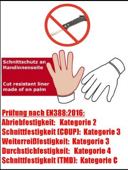 Schnittschutzmaterial Handinnenseite: 100% Para-Aramid