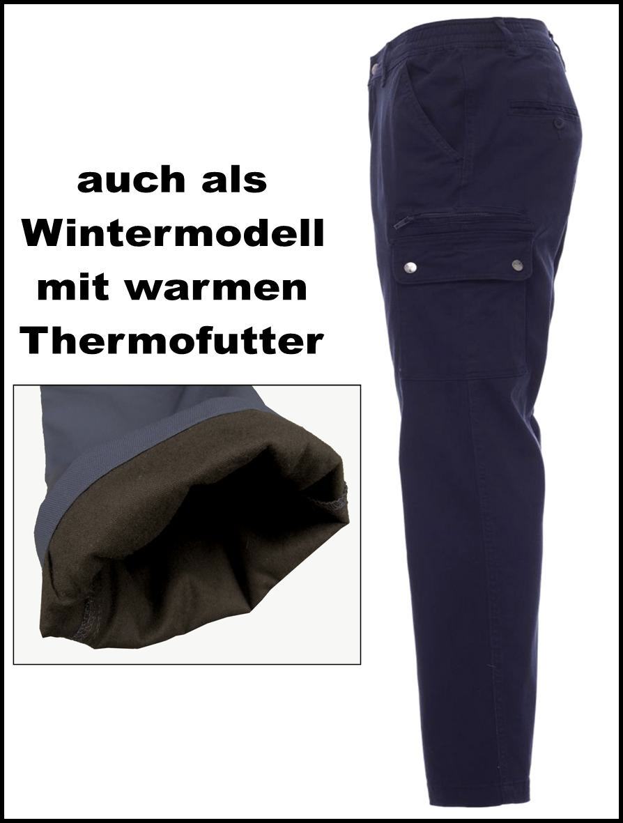 Unsere Cargohosen aus der Comfortline-Serie sehen modern und sportlich aus und verfügen zudem über einige praktische Details. Angefangen bei den vielen praktischen Taschen, die genügend Stauraum bieten, bis hin zum Gummizug im Bund der für einen perfekten Sitz sorgt. Für die kalte Jahreszeit empfehlen wir unsere Winterhose mit warmer Thermofütterung, das Sie auch bei Minusgraden angenehm warm hält.