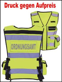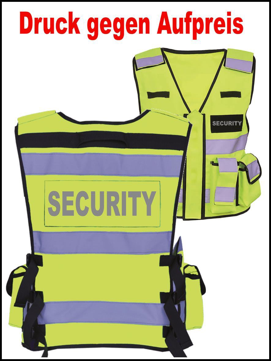 Die taktische Kennzeichnungsweste lässt sich durch die anpassbare Universalgröße und dem Frontreißverschluss schnell und einfach überwerfen. Die optimale Größenanpassung erfolgt durch Klettverschlüsse im Schulterbereich, sowie durch drei Gurtbänder im Seitenbereich zur Weitenverstellung. Die Weste verfügt über 4 aufgenähte Taschen für Ausrüstung sowie ein Sichtfach für Ausweise. Die auffälligen Reflexstreifen bieten eine gute Erkennbarkeit bei Dämmerung und in der Nacht. Auf dem Rücken befindet sich ein neutrales Klettschild, dass gegen Aufpreis bedruckt werden kann. Auf der Brust befindet sich ein Flauschstück, das ebenfalls gegen Aufpreis mit einem bedruckten Klettschild versehen werden kann. Z.B.: ORDNUNGSAMT, SECURITY. ( Wunschdruck auf Anfrage.)